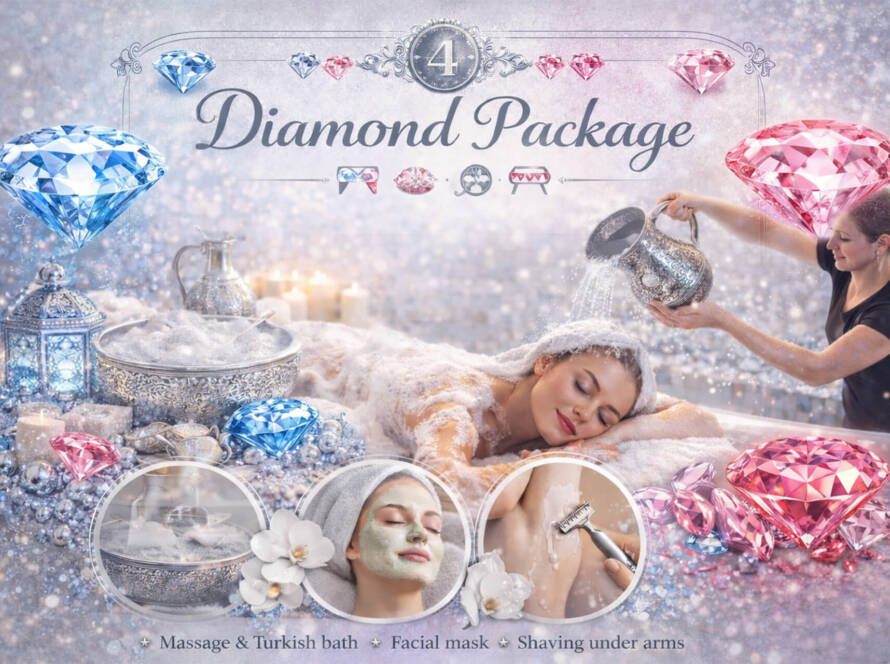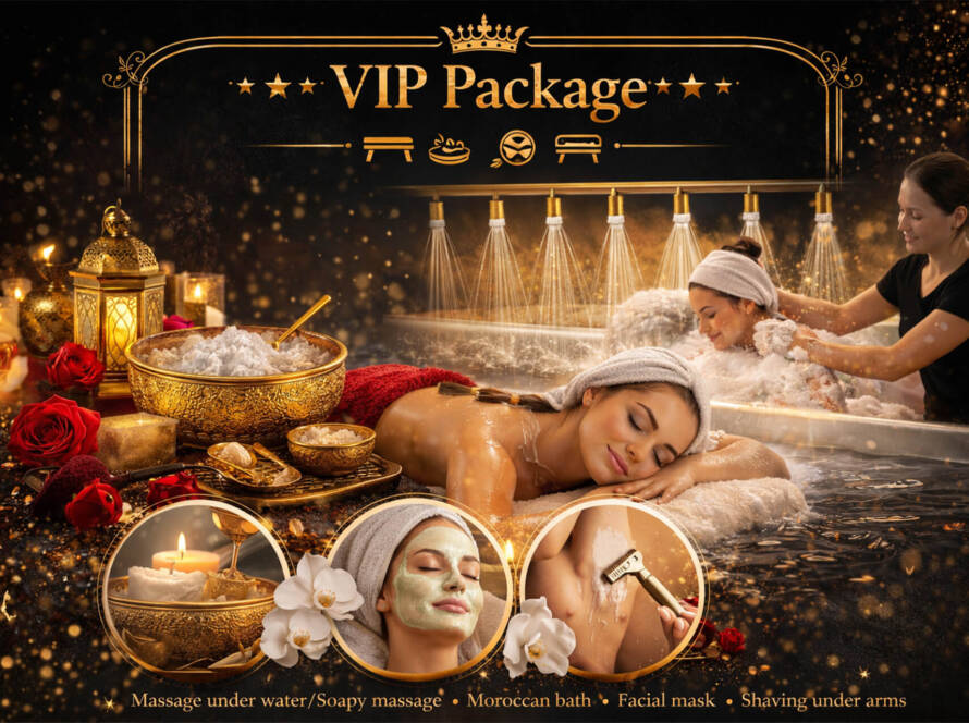 45 Min Massage Under Water or Soapy Massage and 1 Hour Moroccan Bath with Full Body Scrubbing and Facial Mask and Shaving Under Arms